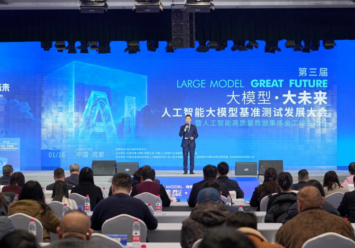 1月16日,第三届“大模型 大未来”人工智能大模型基准测试发展大会暨人工智能高质量数据集炼金工坊生态行在成都高新区举办..